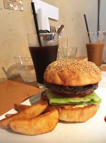 噂のハンバーガーを食べに行く。 とにかくアメリカンなダイナミックさで食べごたえがあるとな。 サンドイッチやらタコライスやらナポリタンやら 目移りしましたが、ここはやはりハンバーガーを。 バンズもこだわりの3種類から選べます。 今回は歯ごたえあり…
